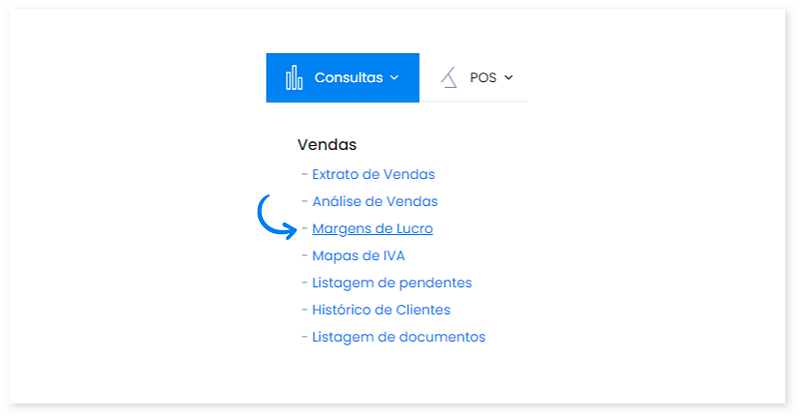 1. Aceda ao menu Consultas e selecione a opção Margens de Lucro.