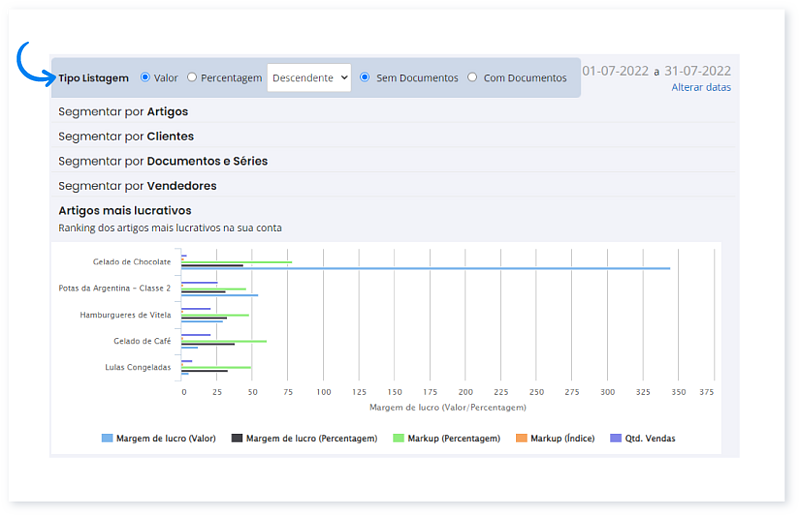 Tire o máximo partido desta ferramenta que lhe permite saber quais os artigos ou famílias/categorias de artigos mais lucrativas.