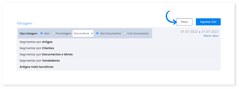7. Definidos os parâmetros, clique em Filtrar.