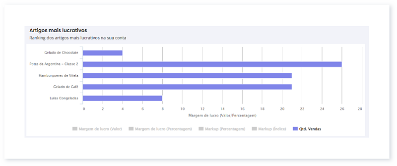 8. São apresentados os primeiros 5 artigos correspondentes às opções que selecionou, sob a forma de um gráfico, em Artigos mais lucrativos.